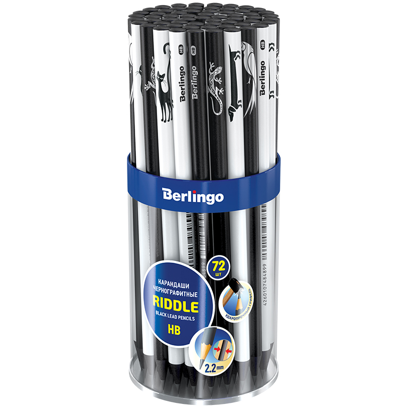 Карандаш чернографитный HB Berlingo "Riddle" черное дерево, круглый, заточен., ассорти