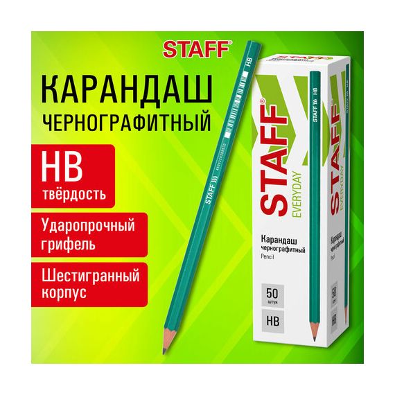 Карандаш чернографитный STAFF "EVERYDAY" BLP-GRN, 1 шт., НВ, пластиковый, корпус зеленый