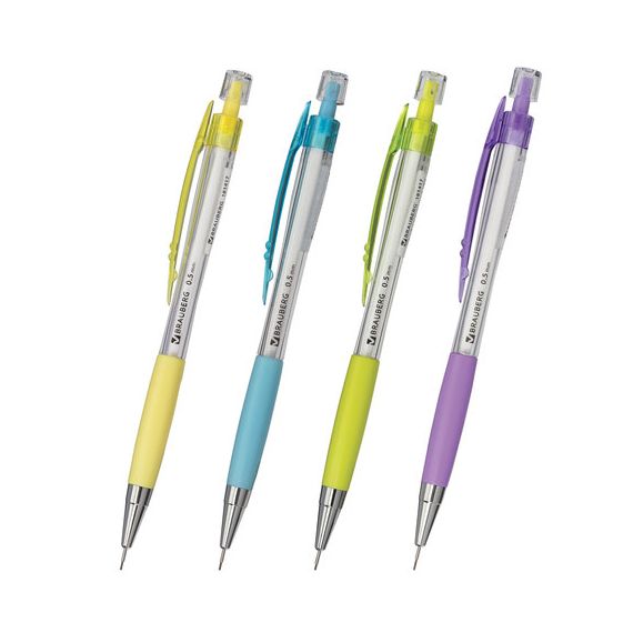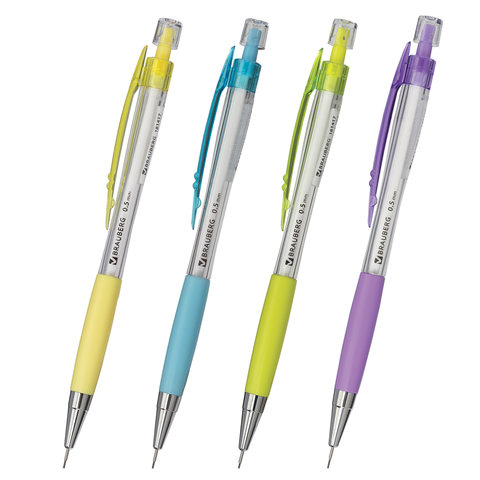 Карандаш механический 0,5 мм BRAUBERG "Elegant", корпус ассорти, резиновый держатель