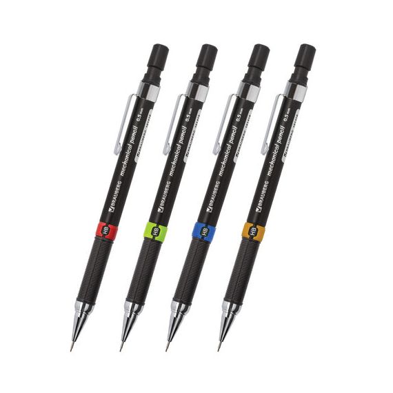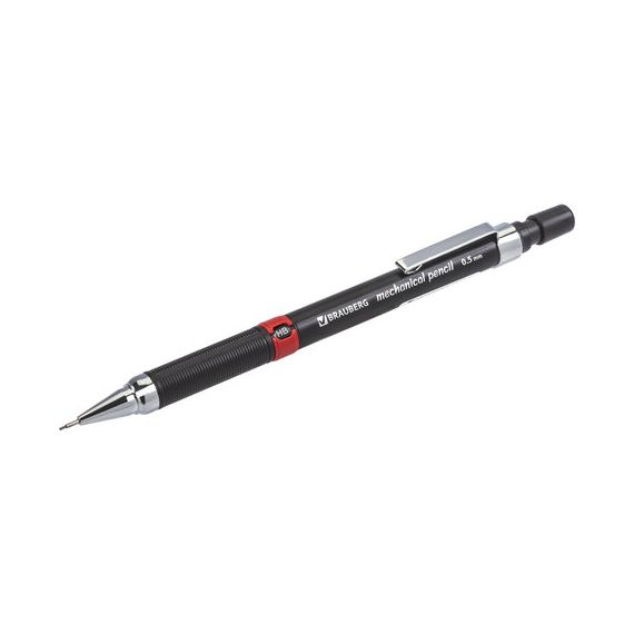 Механический карандаш BRAUBERG с корпусом черного цвета и хромированными деталями. Оснащен передвижным колечком, позволяющим обозначить твердость грифеля внутри.
