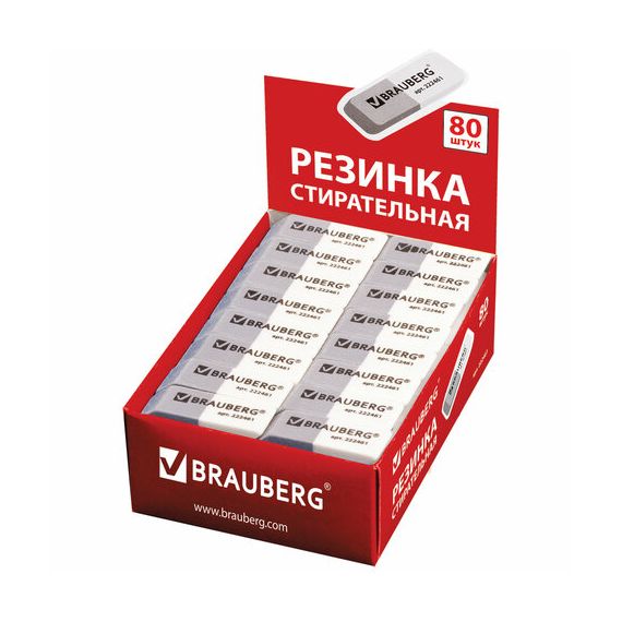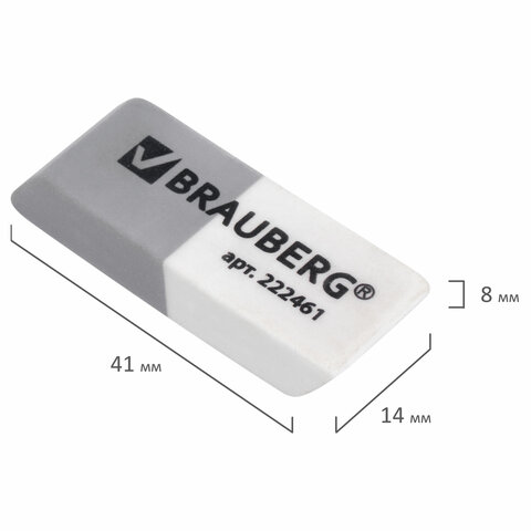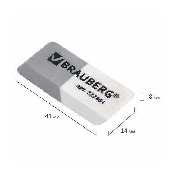 Ластик BRAUBERG предназначен для удаления надписей, сделанных чернографитными карандашами.