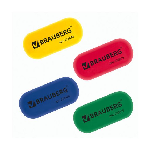 Ластик BRAUBERG предназначен для удаления надписей, сделанных чернографитными карандашами.