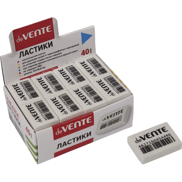 Ластик "deVENTE. Box" синтетический каучук, прямоугольный белый, 27x18x10 мм, dust-free, индивидуаль