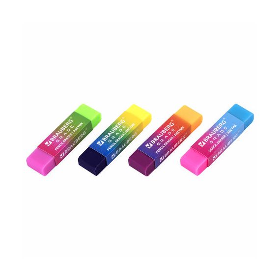 Ластик BRAUBERG "Grade" выполнен в градиентных цветах и предназначен для удаления надписей, сделанных чернографитным карандашом.