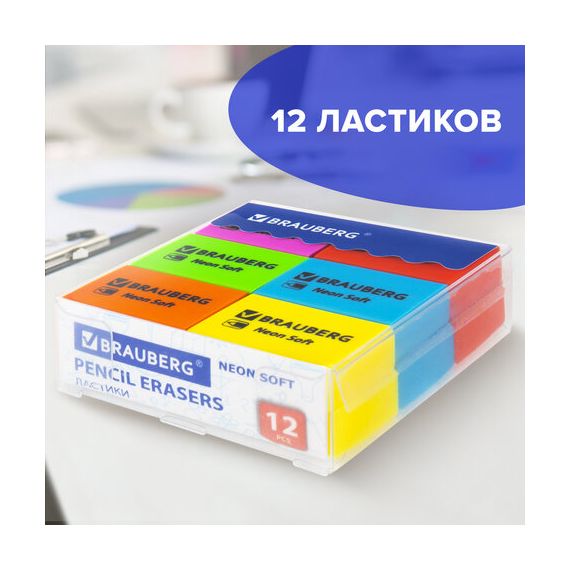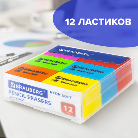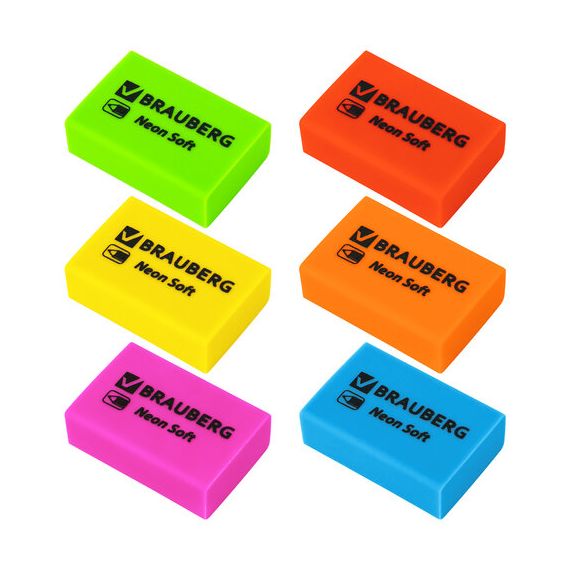 Ластики BRAUBERG NEON SOFT выполнены в неоновых цветах и предназначены для удаления надписей, сделанных чернографитным карандашом.