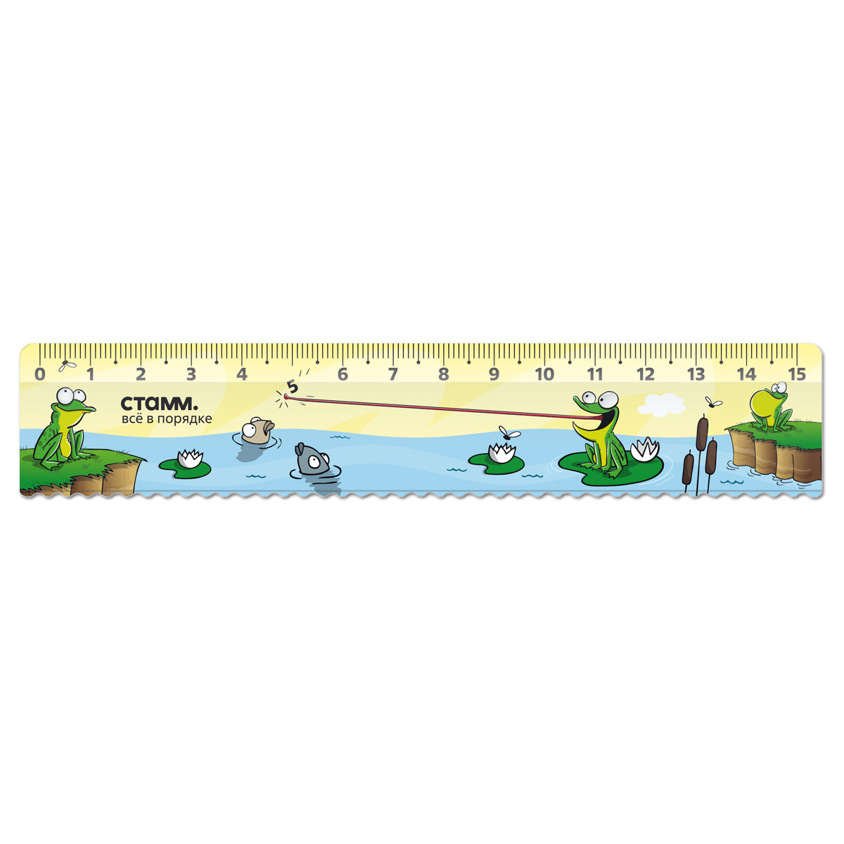 Линейка 15см СТАММ "Лягушки", пластиковая, с волнистым краем, европодвес