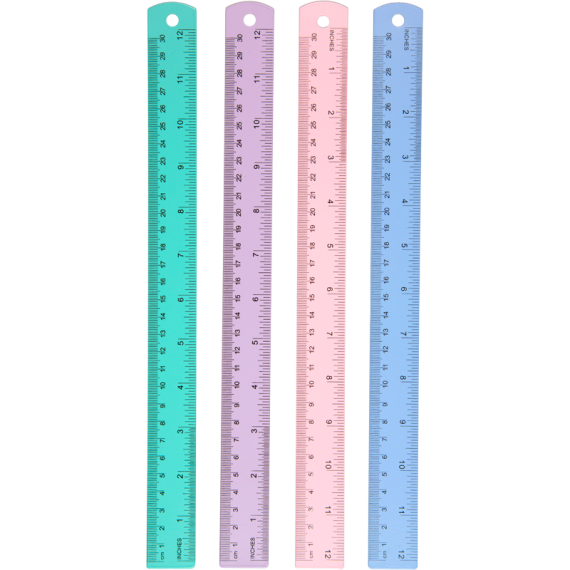 Линейка алюминиевая "deVENTE. Pastel" 30 см, с двусторонней шкалой, ассорти 4 цвета, в пластиковом подвесе