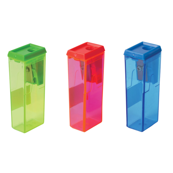 Качественное стальное лезвие обеспечивает лёгкое равномерное затачивание карандашей. Контейнер для стружки изготовлен из тонированного цветного пластика. Поставляется в нескольких вариантах цвета (без возможности выбора).
