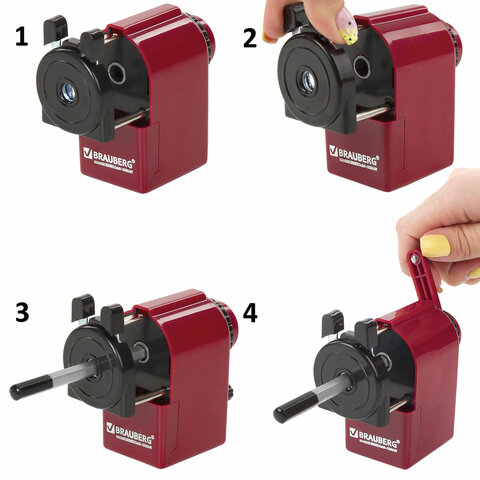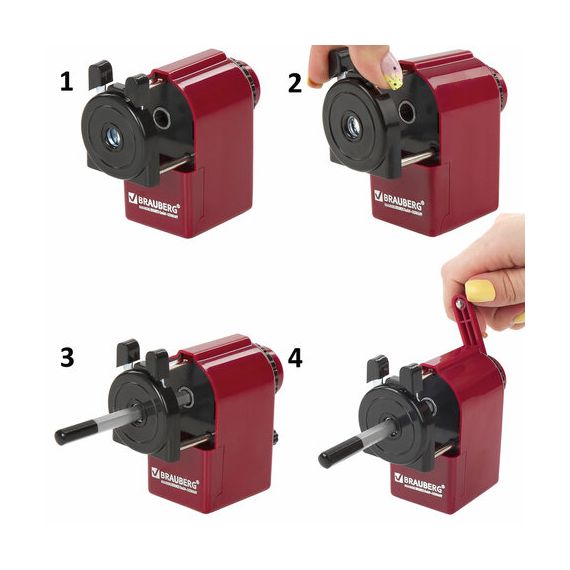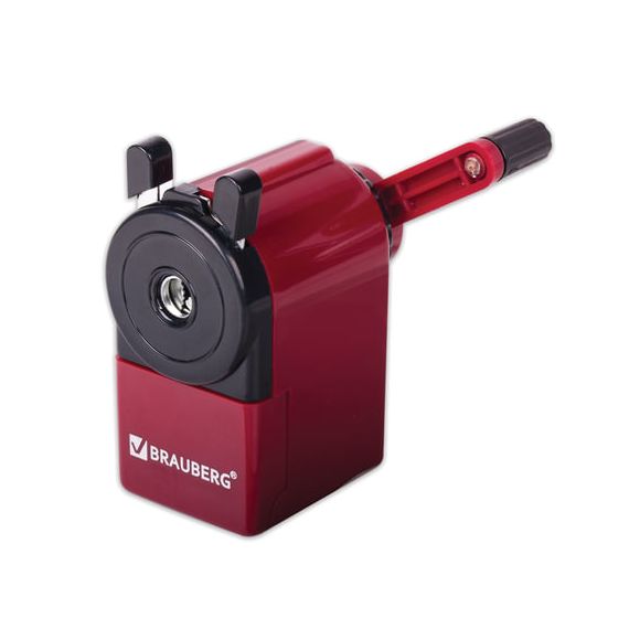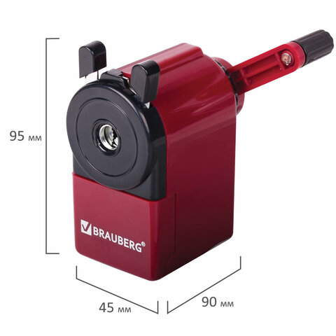 Точилка механическая BRAUBERG "JET", металлический механизм, черный/бордовый
