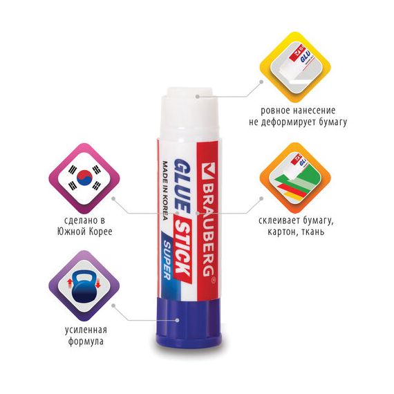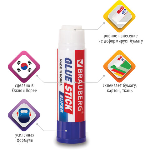 Клей-карандаш BRAUBERG SUPER обеспечивает высокий уровень склеивания бумаги, картона и фотобумаги. Идеально подходит для офиса, дома и школы.