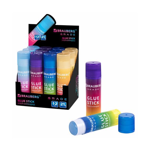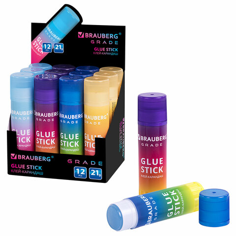 Клей-карандаш 21 г, в градиентном корпусе BRAUBERG GRADE, PVP-основа, ассорти