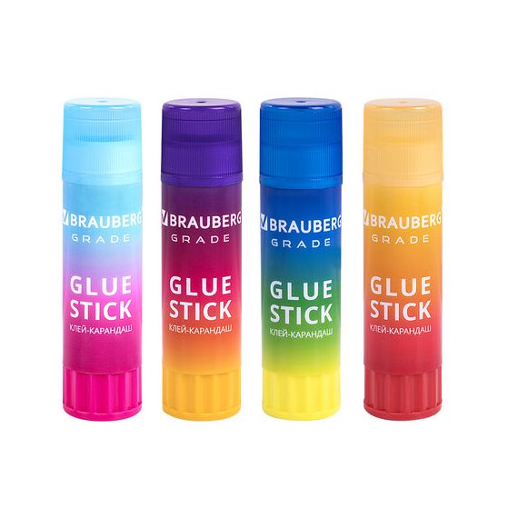 Клей-карандаш BRAUBERG GRADE в градиентном корпусе оживит офисный или домашний рабочий стол, и сделает уроки труда в школе еще интереснее.