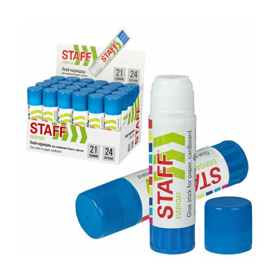 Объем - 21 г. Клей-карандаш STAFF легко наносится и распределяется по поверхности. Не токсичен и безопасен для здоровья. Удобен в использовании: он не пачкает руки, стол, одежду; легко удаляется при помощи воды. Плотно прилегающий колпачок предотвращает высыхание клея. Срок годности - 3 года.