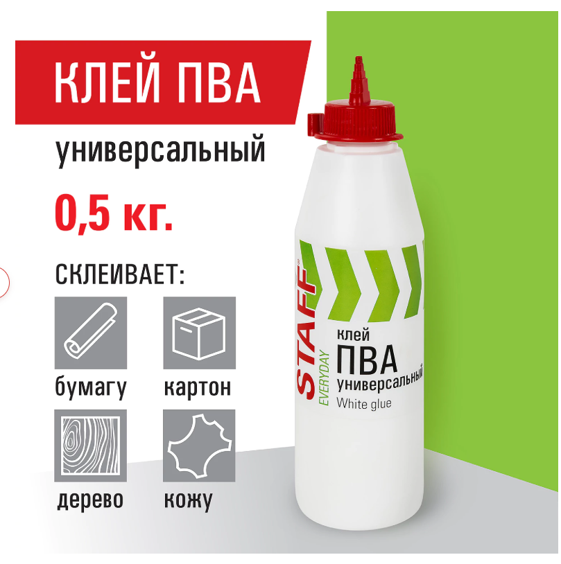 Клей ПВА универсальный STAFF применяется для изделий из бумаги, картона, тканей, виниловых и бумажных обоев. Может использоваться в качестве модификатора для улучшения технологических и адгезионных свойств.