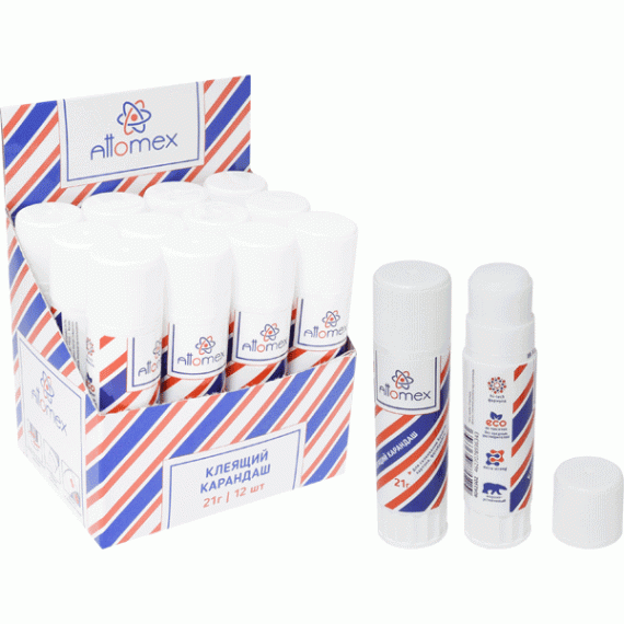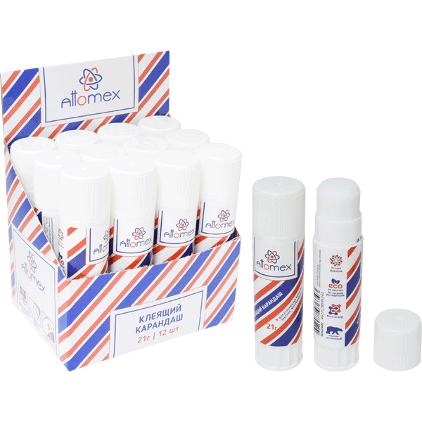 Клеящий карандаш PVA основа "Attomex" 21 г в картонном дисплее с пластиковым поддоном