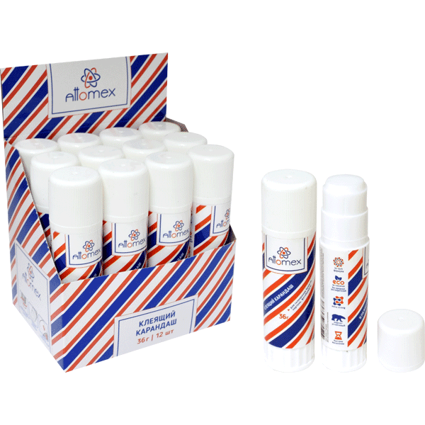 Клеящий карандаш PVA основа "Attomex" 36 г в картонном дисплее с пластиковым поддоном