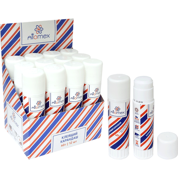 Клеящий карандаш PVA основа "Attomex" 40 г в картонном дисплее с пластиковым поддоном