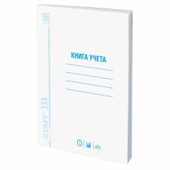 Книга учета STAFF используется для ведения различного рода учетных записей в офисе, на складе, в магазине и т. д. Обложка из бумвинила приятна на ощупь и имеет эстетичный внешний вид. В сочетании с книжным переплетом ей свойственна хорошая износоустойчивость. Такое изделие сохраняет целостность в течение долгого времени. Внутренний блок 96 листов выполнен из типографской бумаги 55 г/м2 и разлинован в клетку.