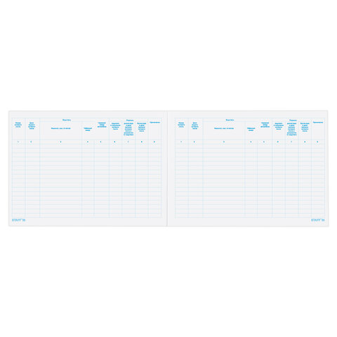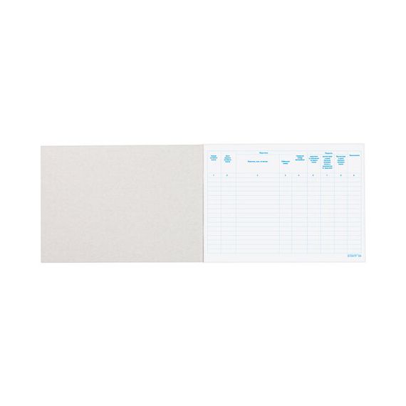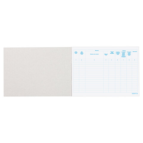 Имеет мягкую картонную обложку, плотностью 200 г/м2. Название на обложке выполнено печатью офсетного способа. Горизонтальная ориентация. Внутренний блок содержит 48 листов офсетной бумаги плотностью 60 г/м2, разлиновкой и текстом по форме №8, облегчающими ведение записей. Формат А4 (292х200 мм).