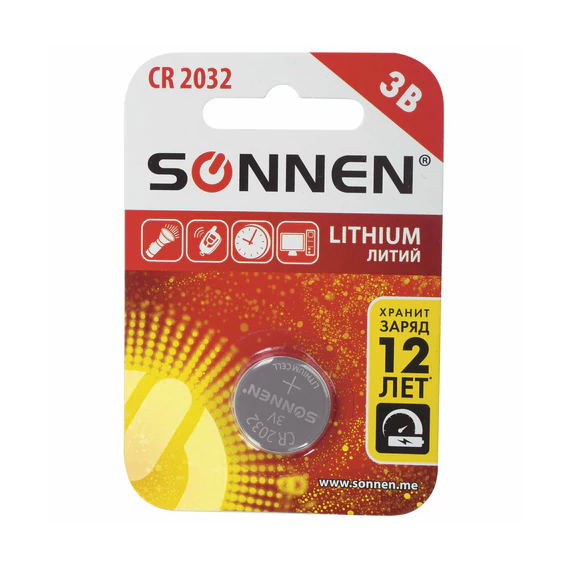 Батарейка литиевая SONNEN Lithium CR2032 "таблетка, дисковая, кнопочная" 1 шт., блистер
