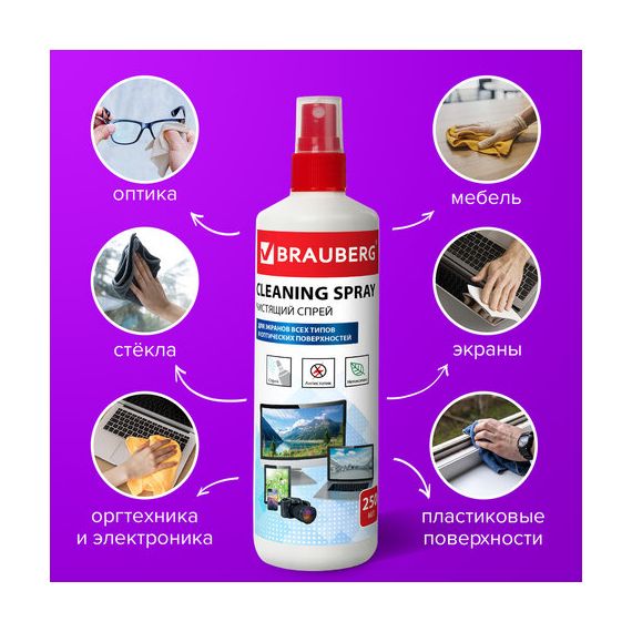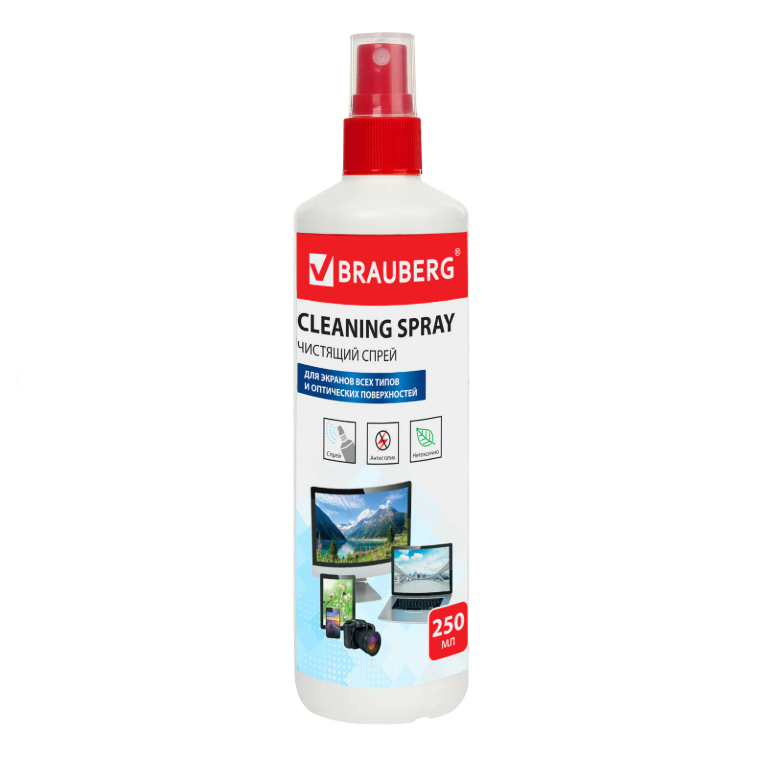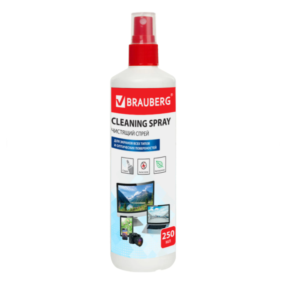 Чистящая жидкость-спрей BRAUBERG для экранов всех типов и оптики, универсальная, 250 мл