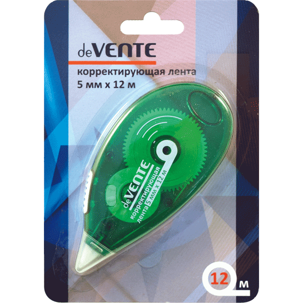 Корректирующая лента "deVENTE" 5 ммx12 м, полупрозрачный корпус с цветной рамкой, белый, фронтальный аппликатор, в картонном блистере