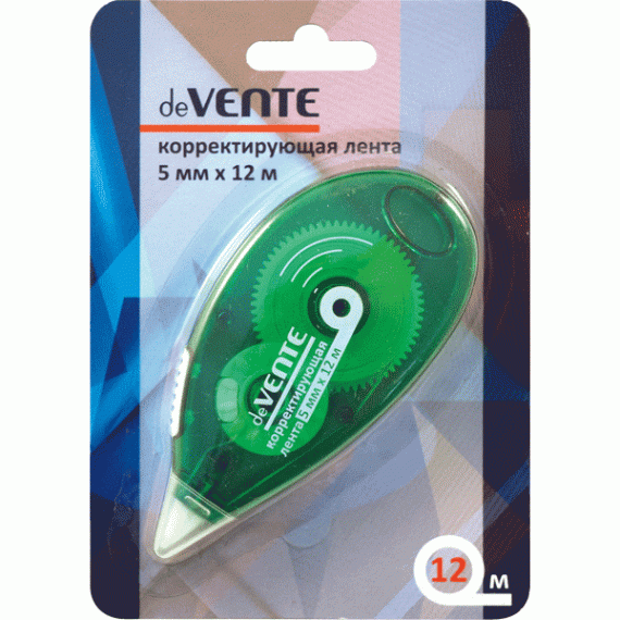 Корректирующая лента "deVENTE" 5 ммx12 м, полупрозрачный корпус с цветной рамкой, белый, фронтальный