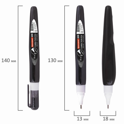 Ручка-корректор BRAUBERG, 8 мл, металлический наконечник, черный корпус
