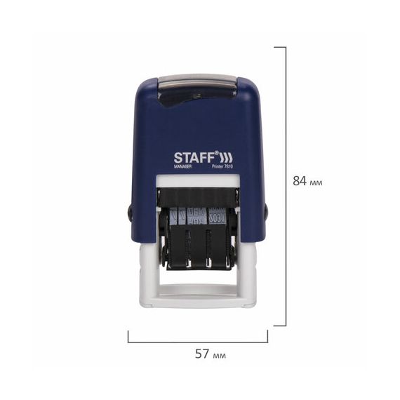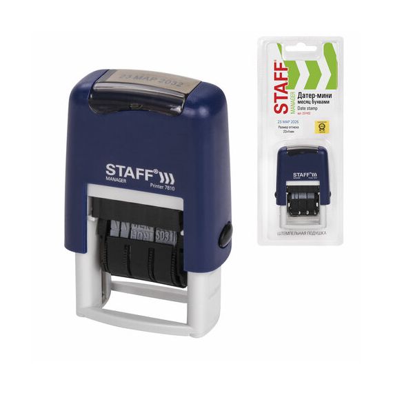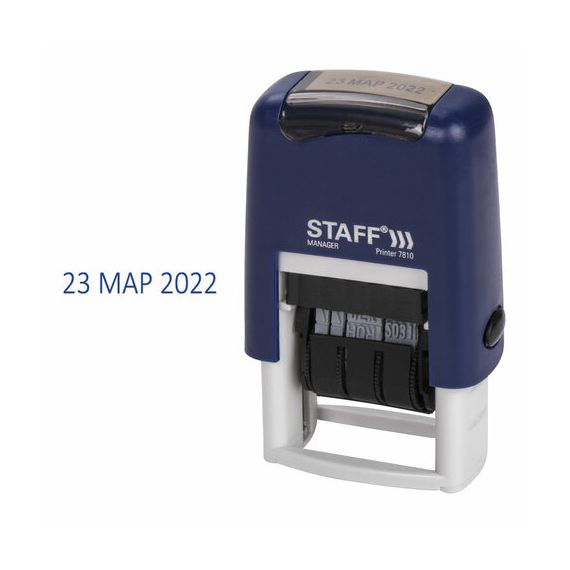 Датер STAFF "Printer 7810" предназначен для создания оттиска даты с указанием месяца буквами, что позволяет существенно экономить рабочее время при нанесении необходимых отметок на документы.