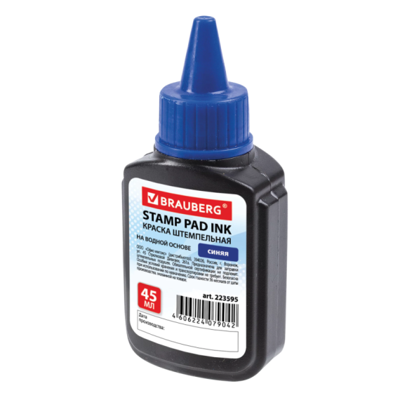 Штемпельная краска BRAUBERG предназначена для заправки штемпельных подушек, используемых для всех видов ручных и автоматических оснасток печатей, штампов, нумераторов и датеров.