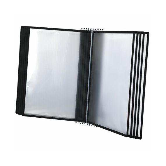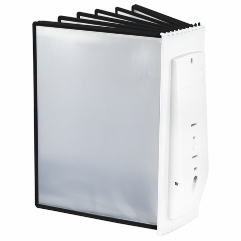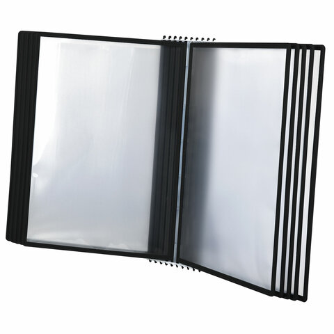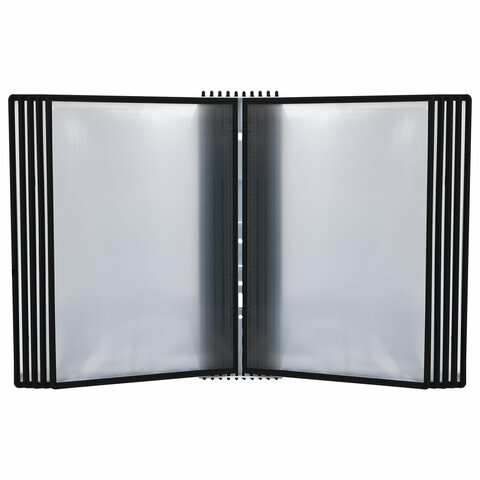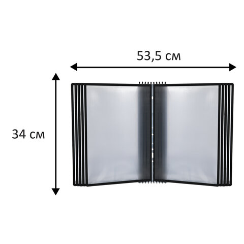 10 двусторонних панелей позволяют одновременно разместить до 20 листов формата А4. Опора и рамка демосистемы изготовлены из прочного АБС-пластика. Прозрачный карман из ПВХ обладает антибликовыми свойствами и надежно защищает документы от внешних воздействий.