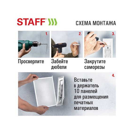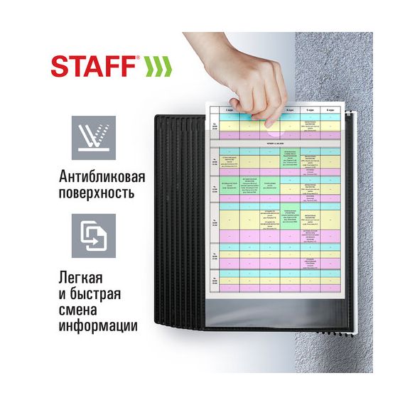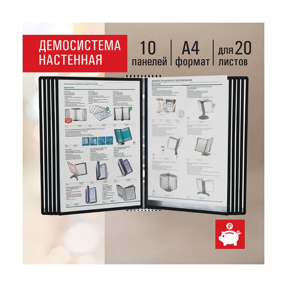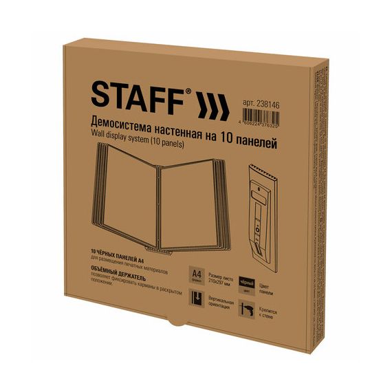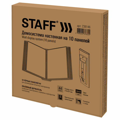 Демосистема настенная на 10 панелей, с 10 черными панелями А4, STAFF "Profit", 238146