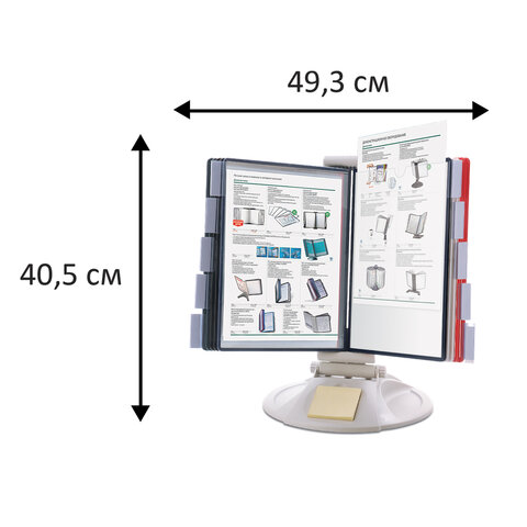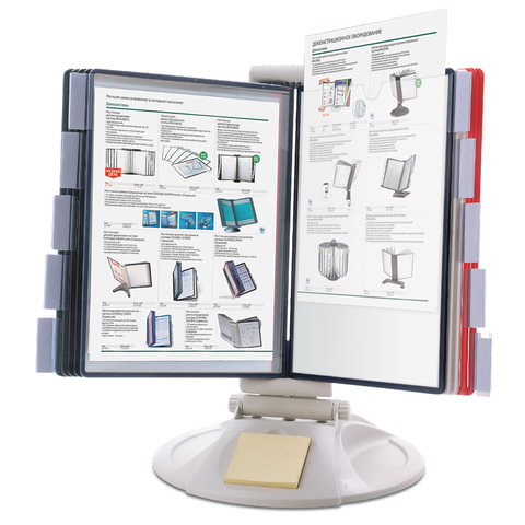 10 двухсторонних цветных панелей позволяют разместить одновременно до 20 листов формата А4. Прочные и гибкие литые рамки панелей изготовлены из полипропилена, пригодного для повторной переработки и дальнейшего использования. Демопанели оснащены съемными ярлычками-табуляторами для маркировки и удобного поиска нужной информации. Карман демопанели из прочного прозрачного материала с антибликовым покрытием надежно защитит документы от внешних воздействий. Возможно выставить наиболее удобный угол наклона дисплейного модуля, конкретно для вашего места размещения. Стильный серый цвет пластикового корпуса подойдёт для большинства современных интерьеров.