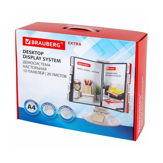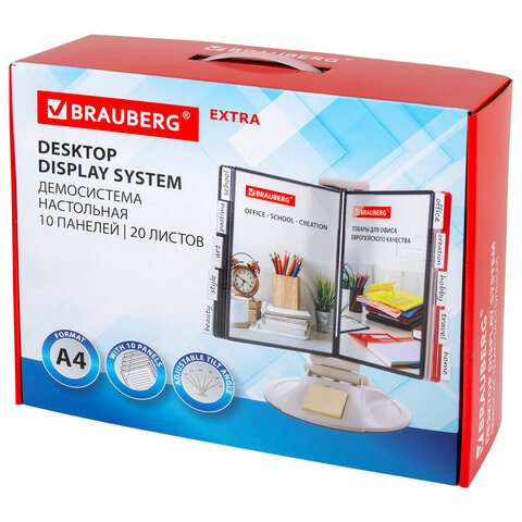 Демосистема настольная на 10 панелей, с 10 цветными панелями А4, серая, BRAUBERG "EXTRA", 236715