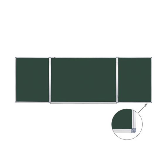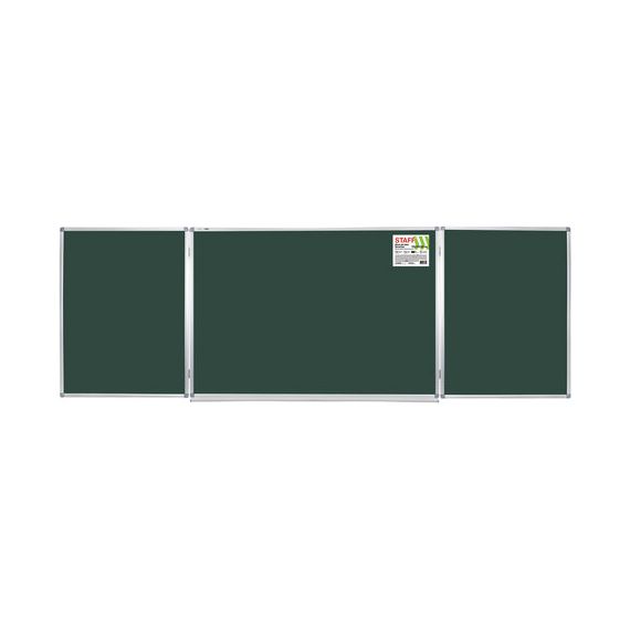 Доска для мела магнитная 3-х элементная 100х150/300 см, 5 рабочих поверхностей, зеленая, STAFF, 238009