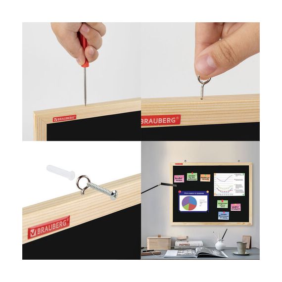 Размер доски – 30х45 см. Есть возможность горизонтального и вертикального крепления. Набор креплений для доски в комплекте.