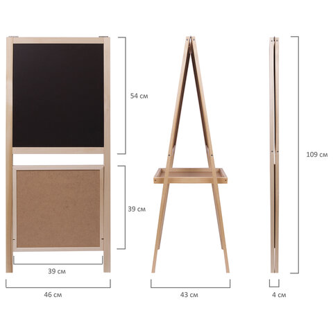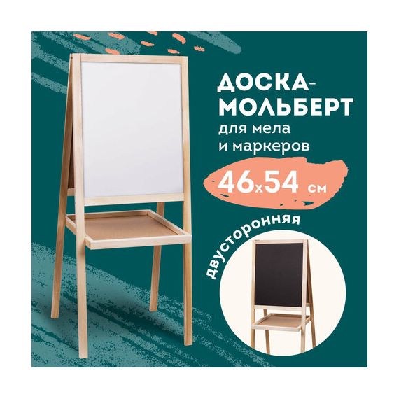 Доска-мольберт двусторонняя для мела и магнитно-маркерная 460х540 мм, черная/белая, РОССИЯ, ПИФАГОР, 236164