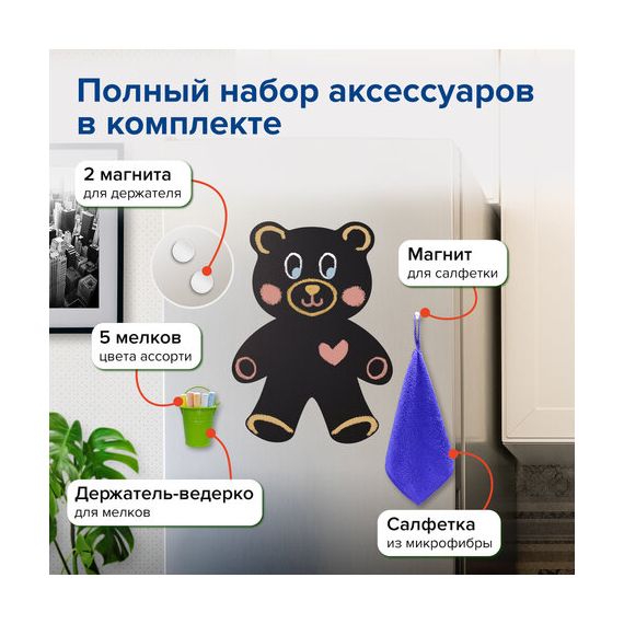 Доска на холодильник магнитно-меловая 30х40 см "Teddy Bear" с набором аксессуаров, BRAUBERG, 237841