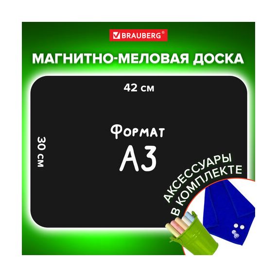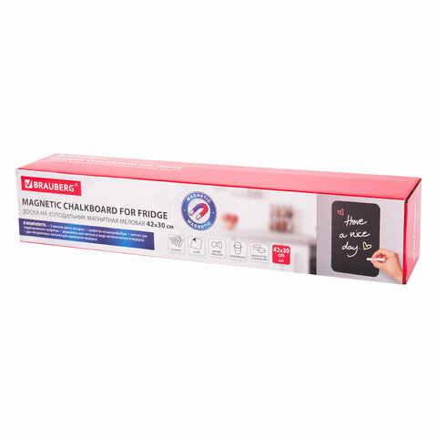 Доска на холодильник магнитно-меловая 42х30 см с мелками, магнитом и салфеткой, BRAUBERG, 237844
