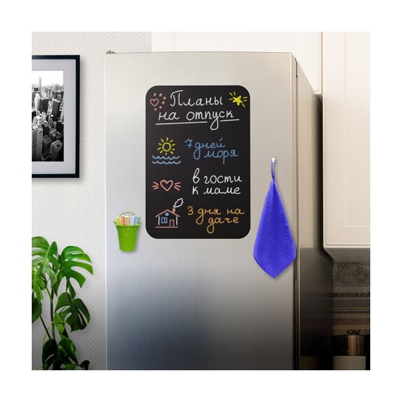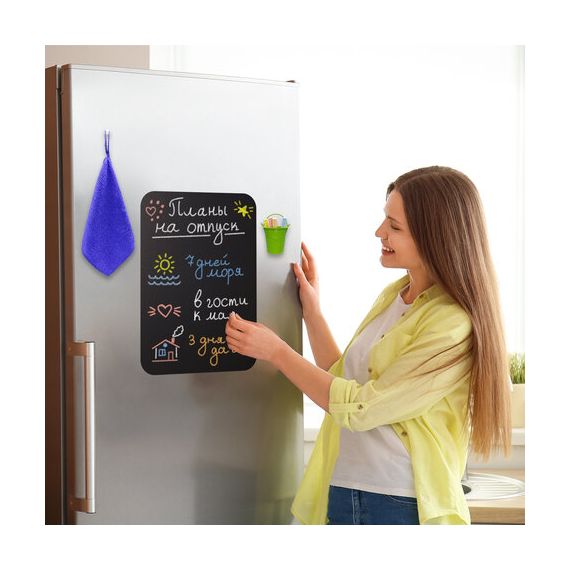 Доска на холодильник магнитно-меловая - это идеальный инструмент для заметок, пожеланий или переписок со своими домочадцами, рисования или черчения графиков, ведения учёта калорий или продуктов, необходимых для покупки.