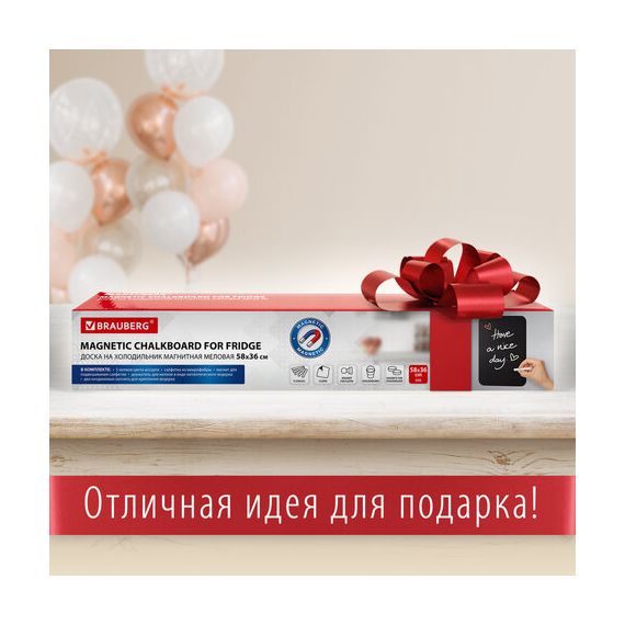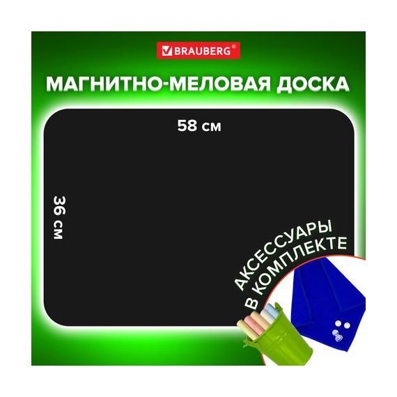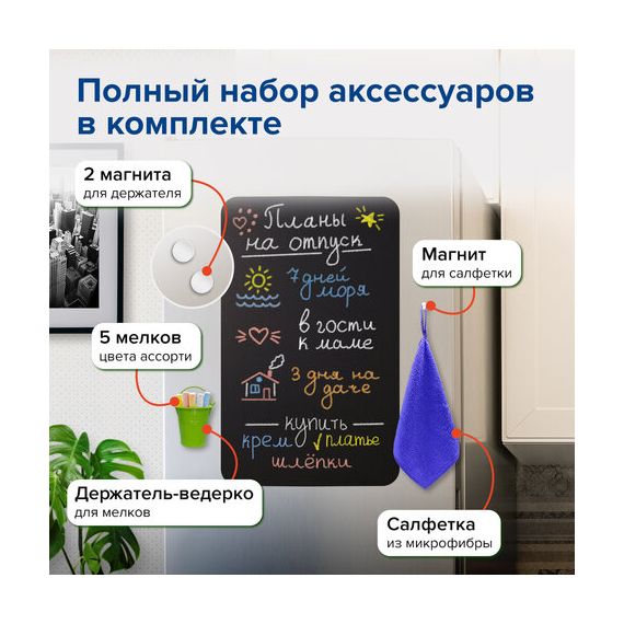 Доска на холодильник магнитно-меловая 58х36 см с мелками, магнитом и салфеткой, BRAUBERG, 237845