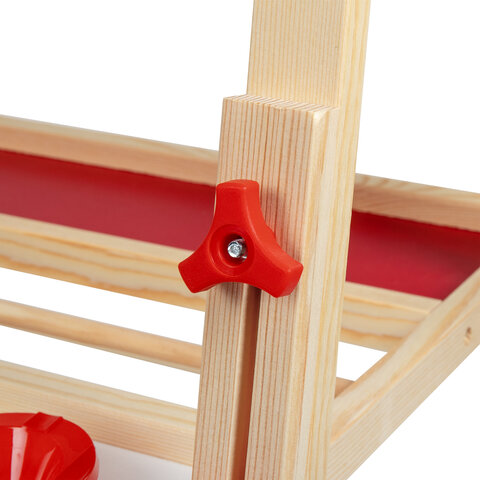 Рекомендации по уходу: для сохранения меловой поверхности мольберта мы рекомендуем использовать мягкие мелки для меловых досок. В случае использования твердых мелков необходимо смочить кончик мела водой перед первым использованием.