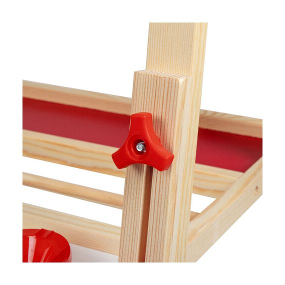 Регулируется по высоте от 78 до 137 см для удобства использования детьми разного возраста и роста. Размер рабочей поверхности – 50х50 см. Цвет рамки – светлое дерево.