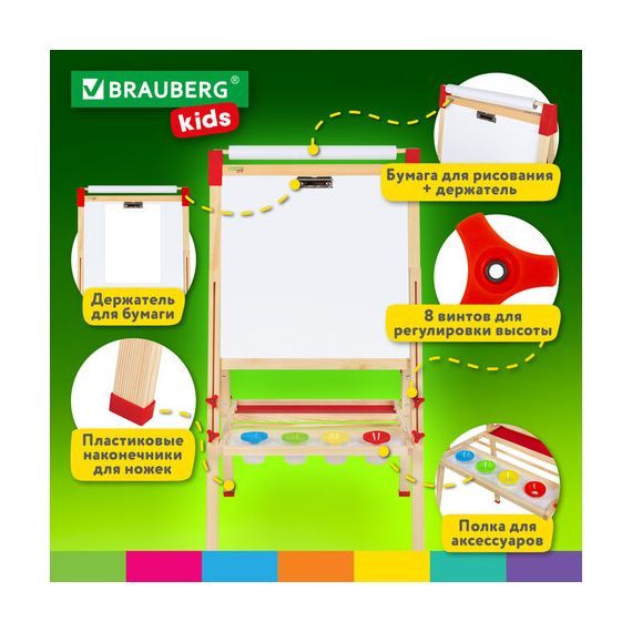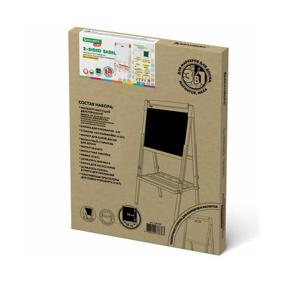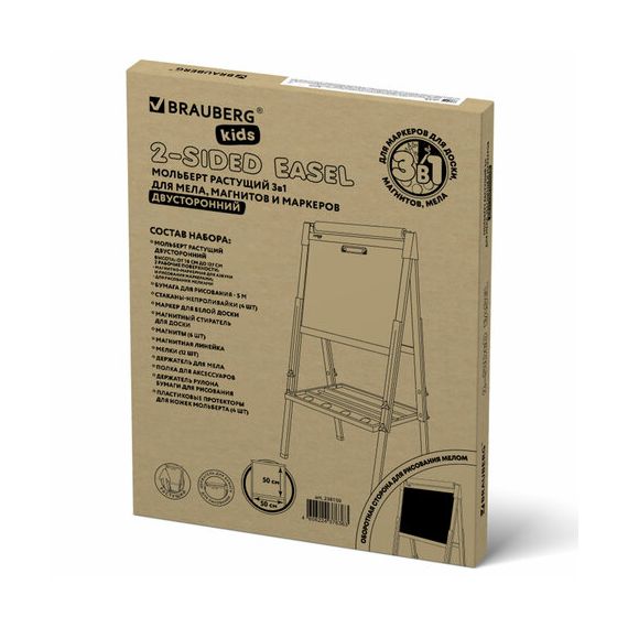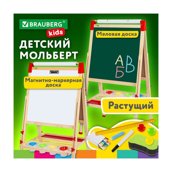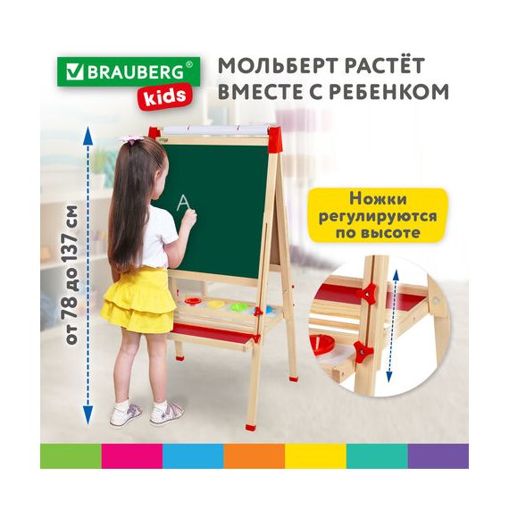 Мольберт растущий 3 в 1 для мела/магнитно-маркерный 50х50 см, бумага для рисования, BRAUBERG KIDS, 238150