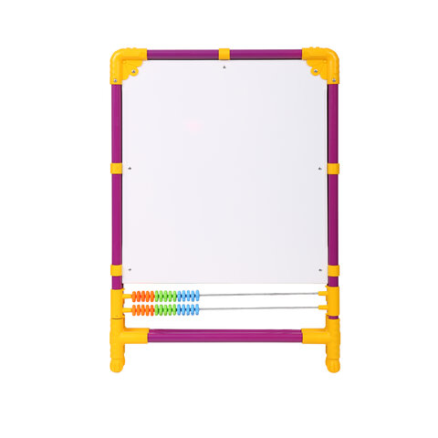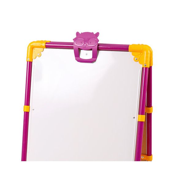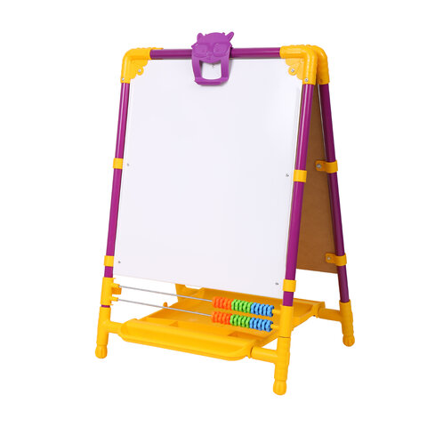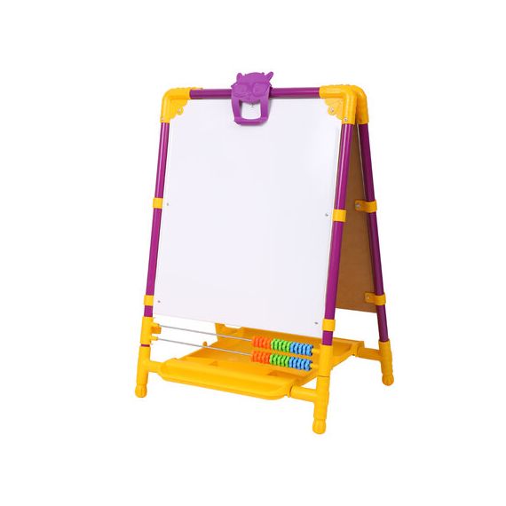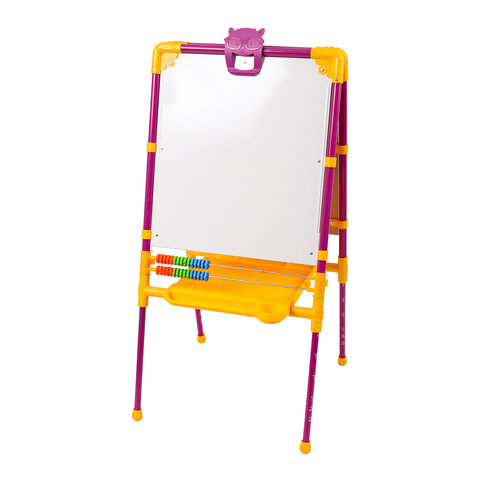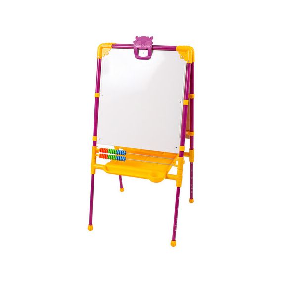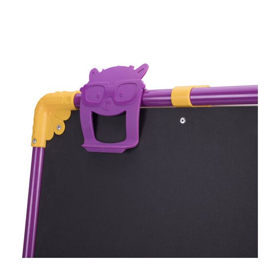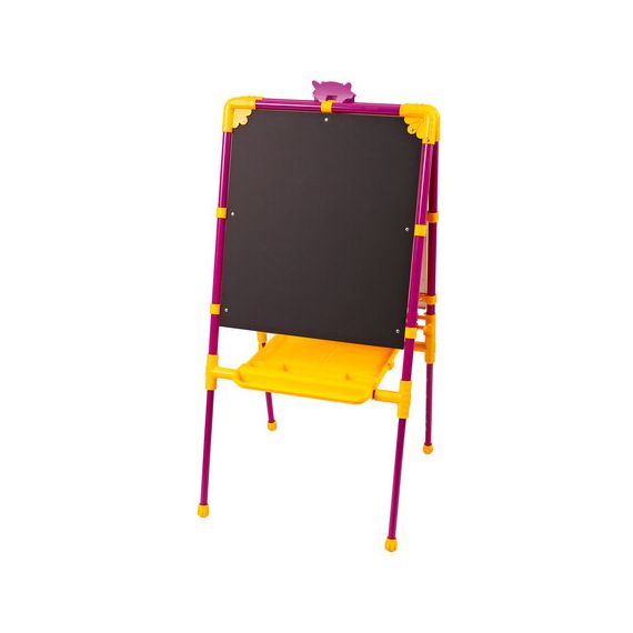 Поверхность мольберта белого цвета предназначена для рисования специальным маркером для белой доски, а также для размещения магнитов; черная поверхность - для рисования мелками. Для детей старше 3-х лет. Регулируется по высоте от 73,5 до 107,5 см для удобства использования детьми разного возраста и роста. Размер рабочей поверхности: 53х46 см. Цвет: сиреневый.
