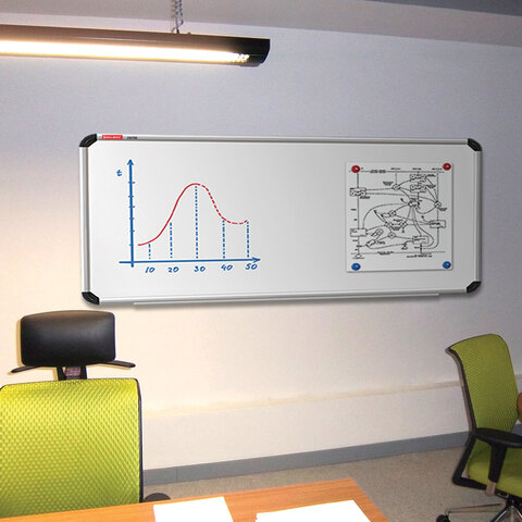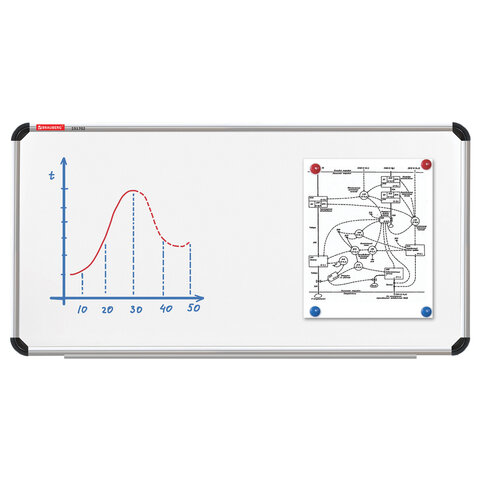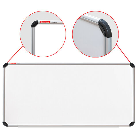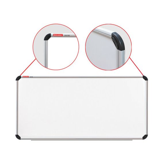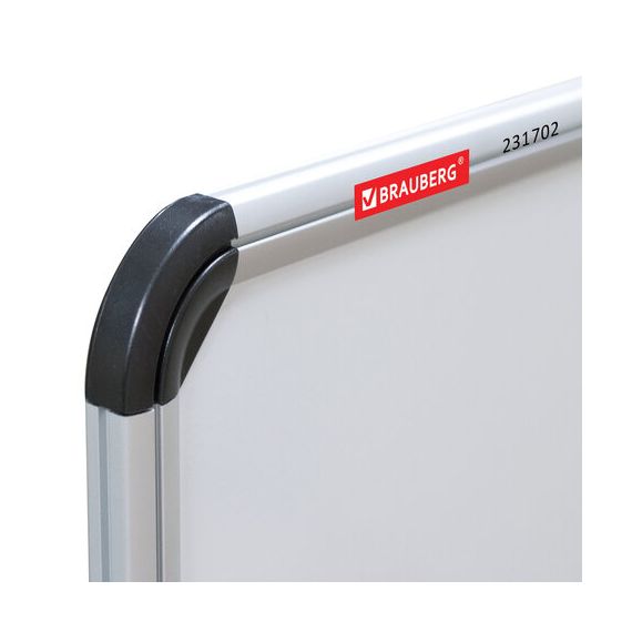 Лаковое покрытие предназначено для письма специальными маркерами для белой доски, а металлическая поверхность позволяет размещать информацию при помощи магнитов. Доска размером 120х240 см имеет укрепленные пластиковые уголки, которые позволяют скрыть места крепления к стене. Профиль придает изделию дополнительную прочность и современный стильный внешний вид. Элементы крепления входят в комплект. Для защиты рабочей поверхности доски на нее нанесена защитная пленка. Перед началом работы – удалить защитную пленку. При должном уходе за рабочей поверхностью доски при помощи чистящей жидкости-спрея и стирателей BRAUBERG поверхность магнитно-маркерной доски прослужит более 10 лет.