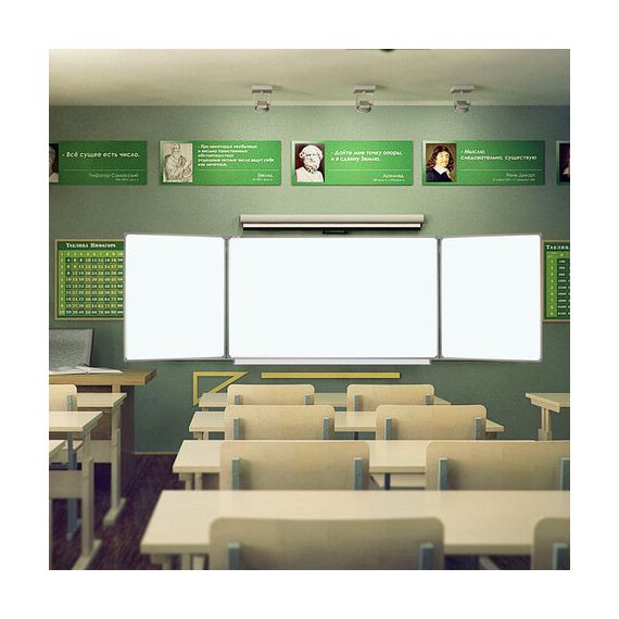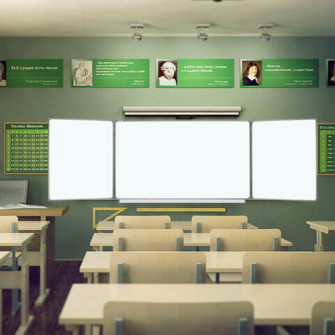 Доска магнитно-маркерная 3-х элементная 100х150/300 см, 5 рабочих поверхностей, белая, STAFF, 238010