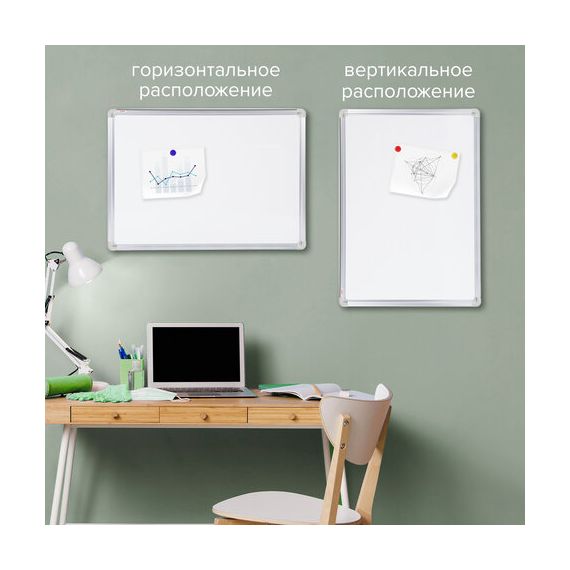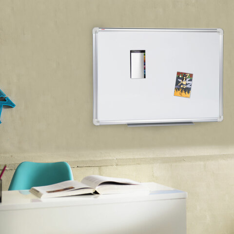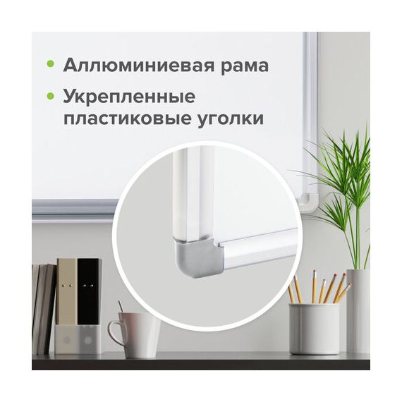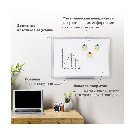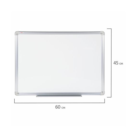 Лаковое покрытие предназначено для письма специальными маркерами для белой доски, а металлическая поверхность позволяет размещать информацию при помощи магнитов. Доска имеет укрепленные пластиковые уголки, которые позволяют скрыть места крепления к стене. Размер - 45х60 см. Профиль придает изделию дополнительную прочность и современный стильный внешний вид. Полочка для аксессуаров и элементы крепления входят в комплект. Возможность горизонтального и вертикального крепления. Надежная упаковка: термоусадочная пленка и коробка. Перед началом работы – удалить защитную пленку. При должном уходе за рабочей поверхностью доски при помощи чистящей жидкости-спрея и стирателей BRAUBERG поверхность магнитно-маркерной доски прослужит более 10 лет.
