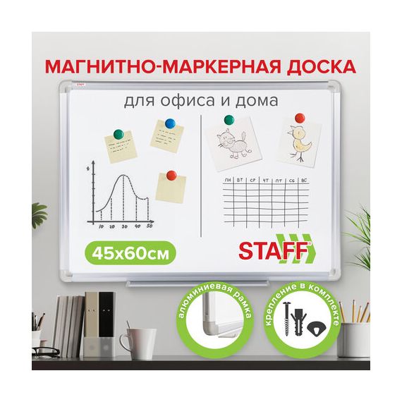 Доска магнитно-маркерная 45х60 см, алюминиевая рамка, ГАРАНТИЯ 10 ЛЕТ, STAFF, 235461