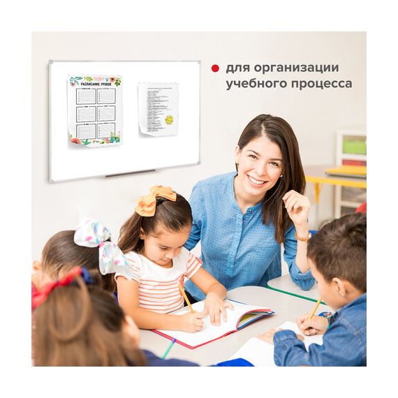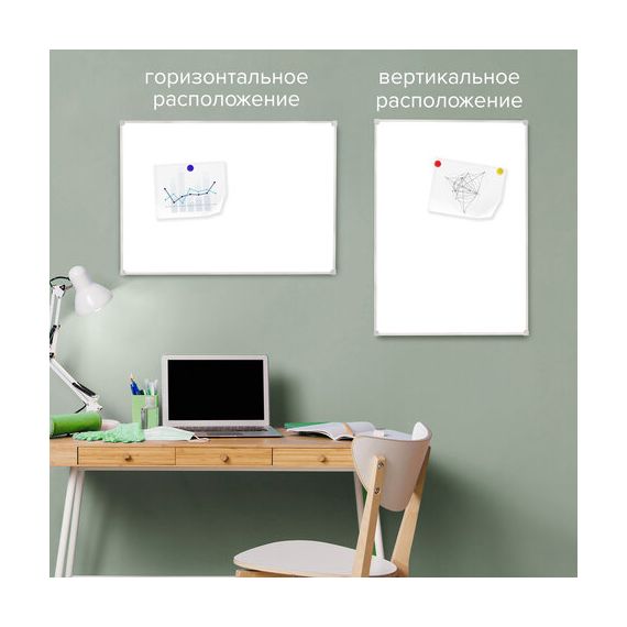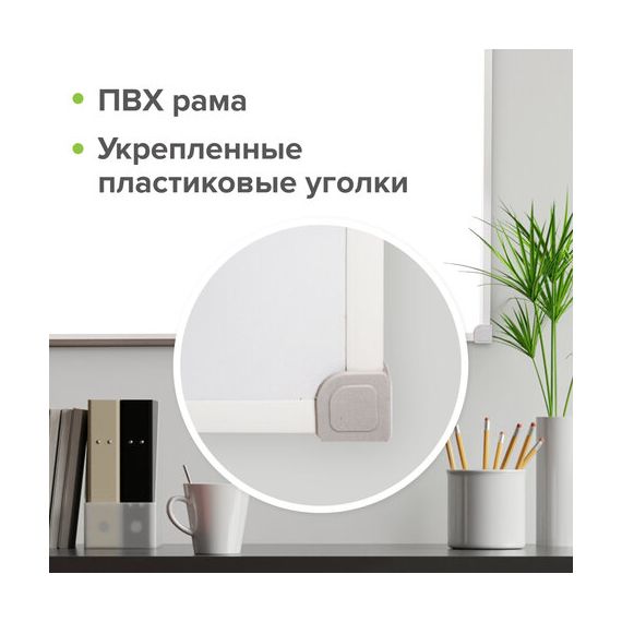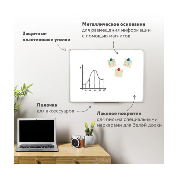 Лаковое покрытие предназначено для письма специальными маркерами для белой доски, а металлическая поверхность позволяет размещать информацию при помощи магнитов. Доска имеет укрепленные пластиковые уголки, которые позволяют скрыть места крепления к стене. Размер - 45х60 см. Профиль придает изделию дополнительную прочность и современный стильный внешний вид. Рамка изготовлена из пластика. Полочка для аксессуаров и элементы крепления входят в комплект. При должном уходе за рабочей поверхностью доски при помощи чистящей жидкости-спрея и стирателей BRAUBERG поверхность магнитно-маркерной доски прослужит более 10 лет.